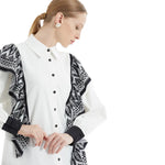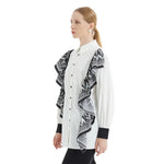 Şal yaka detayıyla zarif bir dokunuş kazanan bu fırfırlı gömlek, şık geçişler için dolabınızın favorisi.