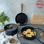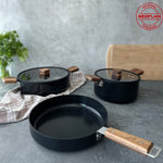 Ticsbrands tarafından sunulan Neoflam Bien Black 5 Parça Tencere ve Tava Seti, zarif siyah rengi, doğal Akasya ağacı sapları ve üstün Xtrema kaplaması ile küçük haneler veya temel mutfak ihtiyaçları için ideal, sağlıklı ve şık bir settir.
